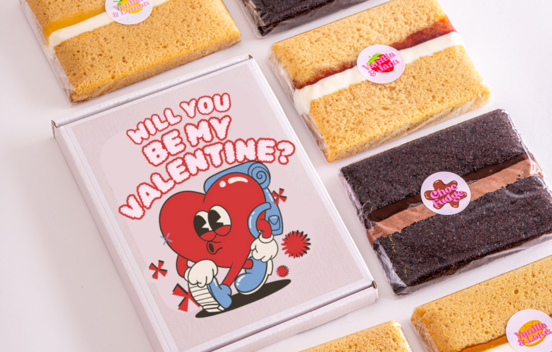 Upgrade your Valentine’s cards with cake and make it extra sweet this year.
