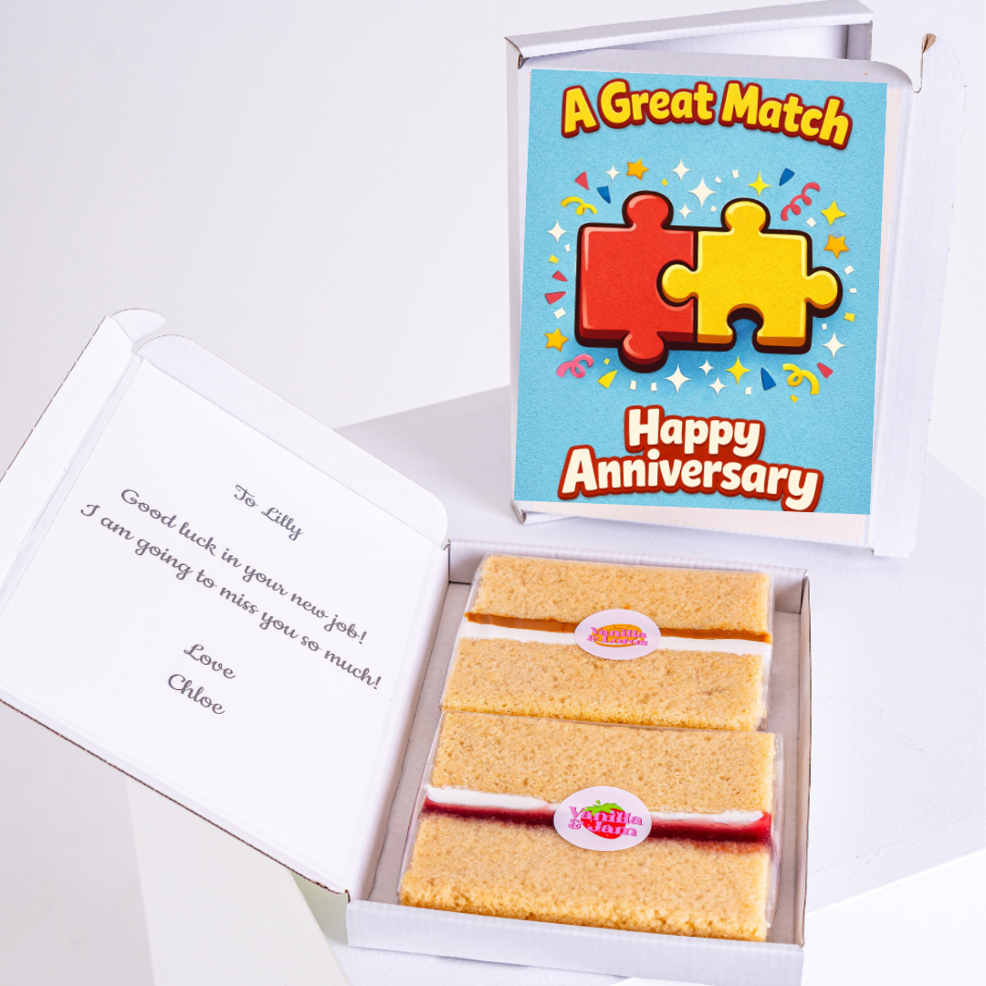 Share a personal slice of happiness with your personalised message printed on the box. A unique letterbox gift delivered across the UK with next-day options.
