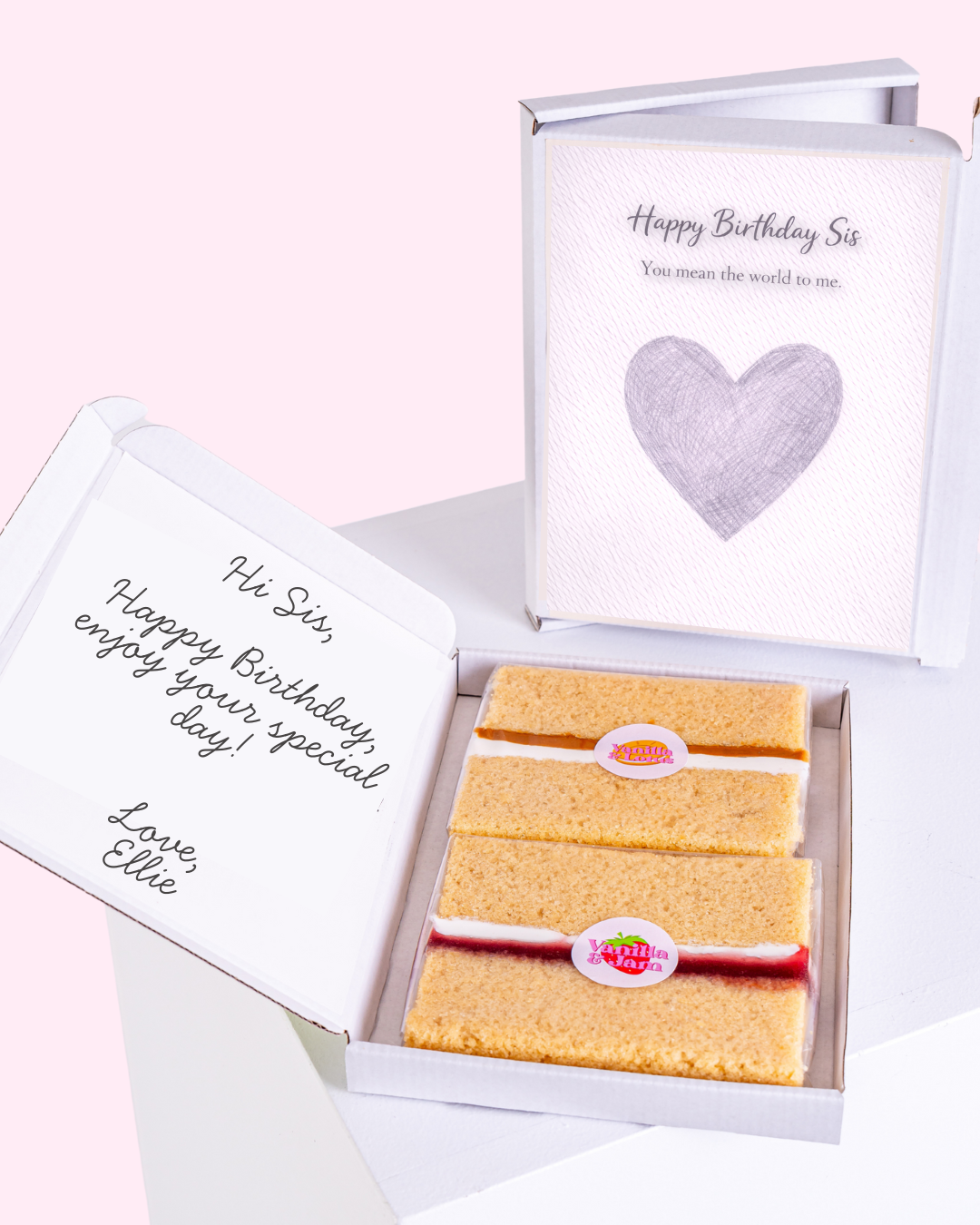 Post a box of cake love with your words printed directly onto the box. Homemade, heartfelt, and delivered to their door.