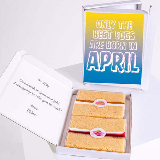 Treat someone to a sweet slice of joy featuring your message right on the box. Delivered with love, baked with joy – straight to their letterbox.