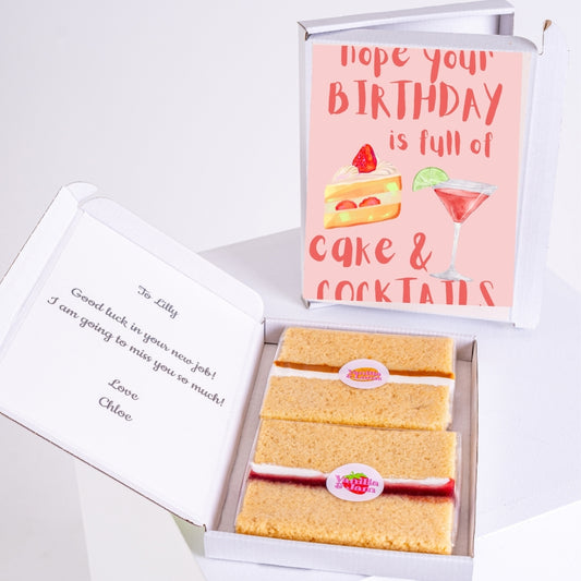 Send birthday vibes full of fun with this playful design featuring a delicious cake slice and a cheeky cocktail. Perfect for those who love to indulge, it comes with a slice of freshly baked homemade cake. Handmade in the UK and delivered straight through the letterbox with next day delivery, it’s a sweet and spirited way to make their day extra special.