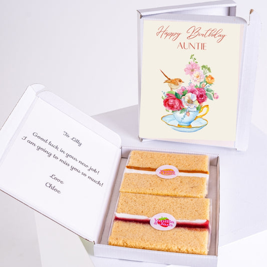 Surprise your auntie with this elegant birthday gift featuring a beautiful floral teacup design and freshly baked cake. The perfect way to send love and sweetness through the letterbox, this handmade gift is crafted with care in the UK and available with next-day delivery. Add your own personalised message for an extra special touch.