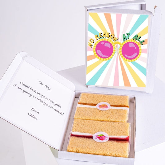 Gift a perfectly portioned cake slice with a message that makes it truly personal. Delivered with love, baked with joy – straight to their letterbox.