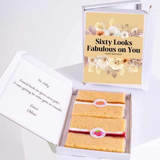 Share a box of cake love with a note they’ll read before the first bite. Freshly baked daily and delivered nationwide through standard letterboxes.