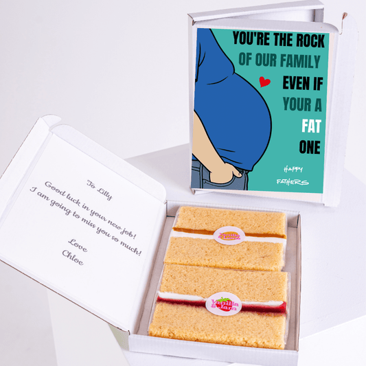 Post a lovingly baked slice of cake featuring your own words on the gift box. Freshly baked daily and delivered nationwide through standard letterboxes.