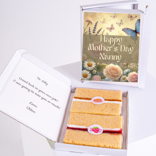 Gift a freshly baked slice of cake with your personalised message printed on the box. Sealed for freshness and sent with care to any UK address.