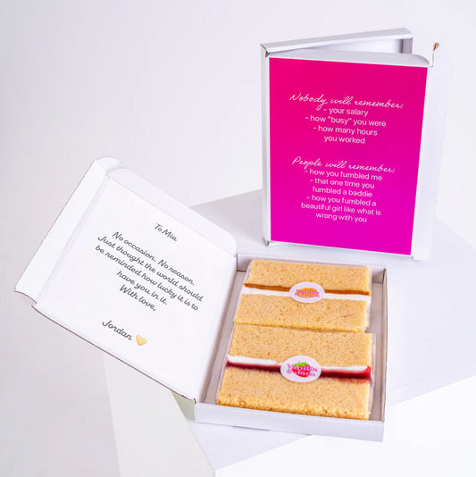 Share a mouth-watering piece of letterbox cake with your personalised message printed on the box. No-fuss gifting with fast, fresh delivery anywhere in the UK.