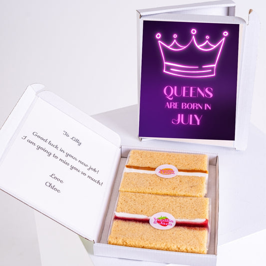 Celebrate a queen’s birthday in style with this bold July gift. Featuring a neon crown design and a freshly baked cake , it’s handmade in the UK and delivered straight to her door. With a personalised message and next-day delivery, it’s the perfect letterbox surprise to make her feel extra special—because queens deserve cake, not just crowns.
