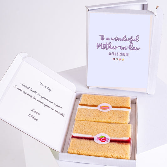 Celebrate your wonderful mother-in-law’s birthday with this thoughtful letterbox gift. Featuring a charming design and a slice of our freshly baked cake, it’s the perfect way to show your appreciation. Delivered directly to her door with next-day UK delivery, this sweet treat will brighten her special day and make her feel cherished. A perfect birthday surprise!