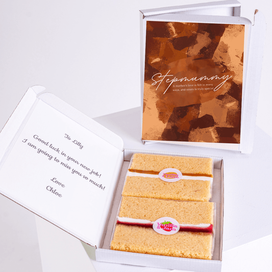 Gift a freshly baked slice of cake with your personalised message printed on the box. Sealed for freshness and sent with care to any UK address.